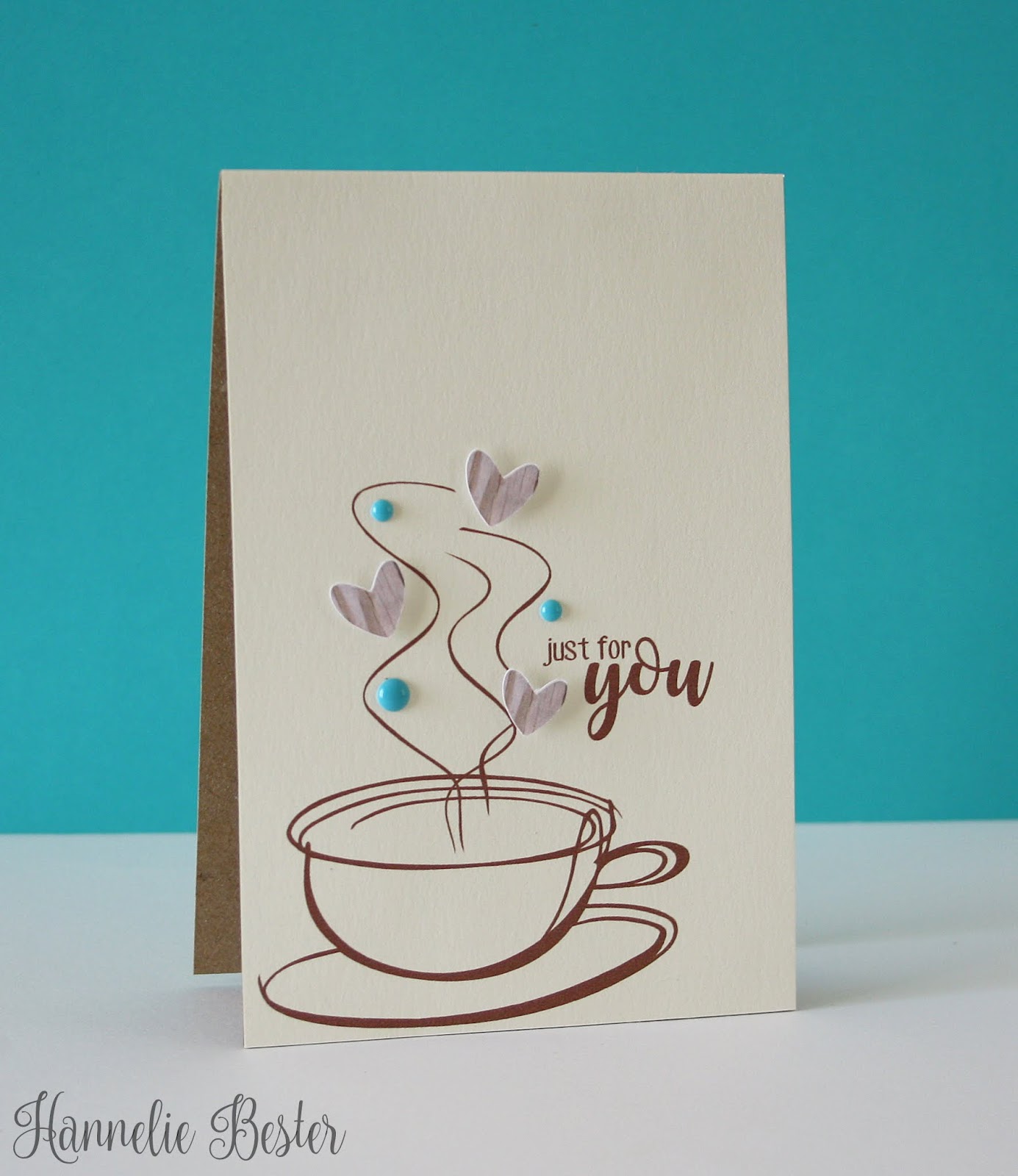 The detailing with the enamel dots and sweet woodgrain hearts is fabulous with this fresh coffee image, Hannelie ... brilliant! Hugs, Anita :)