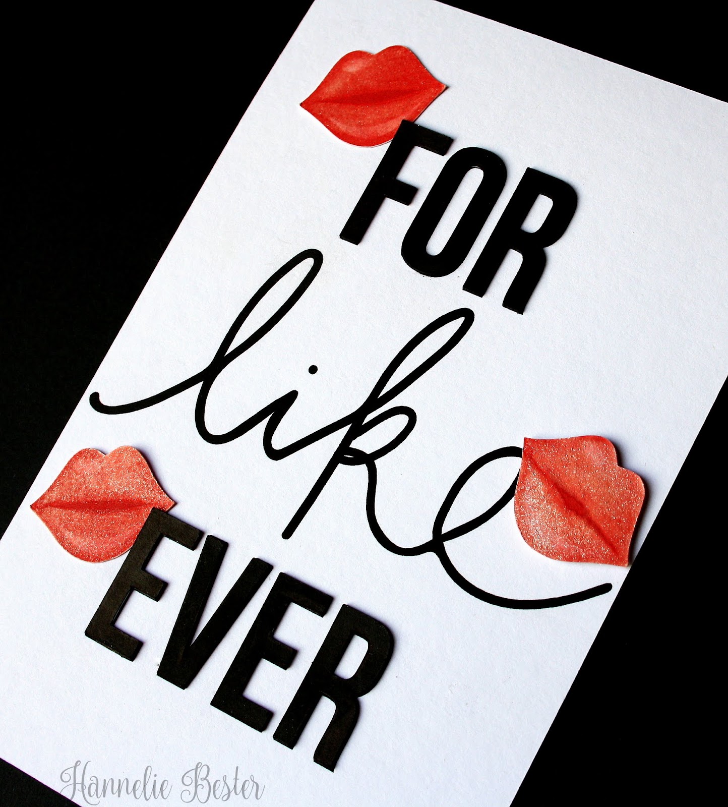 Those exact words from "Winter Wonderland" were the first things that came to mind when I saw the cue card. So glad you looked it up, and gave us all a little tutorial on its meaning; it widens possibilities!! This is a fabulous card, Hannelie!! Love those shimmery, glisteny lips. Perfect for Valentine's Day!! Beautifully CAS, too. Bev