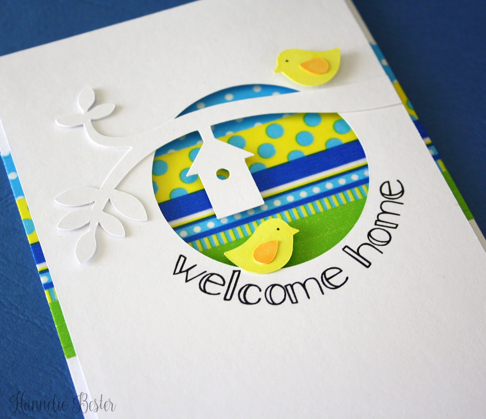 That's Washi????!!! If I could use it half as well as you do, I'd be so happy! These colors and patterns are fabulous; so reminiscent of Spring! And your branch, birdhouse, and those two little yellow birds are absolutely adorable. What a great card! Love this!! Bev